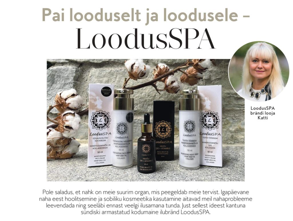 Meil kõigil on oma lugu, erinev ja eriline. Nii on kõikidel LoodusSPA toodetel samuti oma lugu. „Toodete loomisel saame inspiratsiooni naistelt, kes neid kasutavad. See tagasiside ja kogemus on meile väga olulised mõistmaks, milliseid tooteid nad vajavad,“ ütleb LoodusSPA brändi looja Katti, kelle kirg on valmistada looduskosmeetikat, olles inspireeritud ajurveedast ja taimede väest.